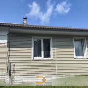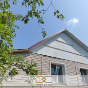 Дом из бруса, обложен кирпичом, утеплен и отделан сайдингом. Крыша шифер. Окна ПВХ (кроме летней веранды).
