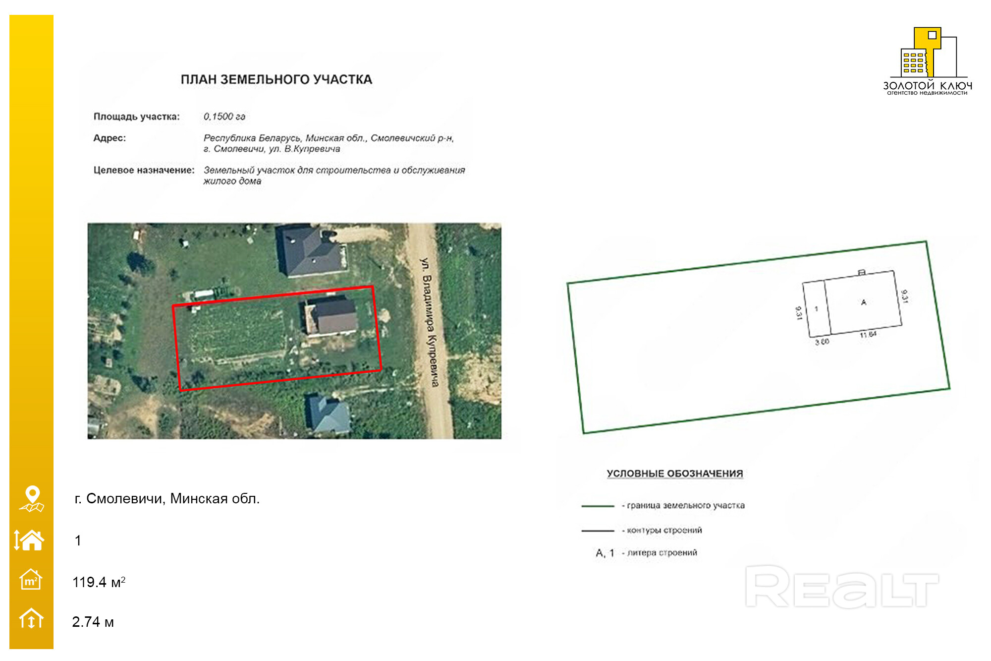 Земельный участок ровный, правильной форм, целевое назначение – для строительства и обслуживания жилого дома.
