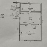 Общая площадь дома 63,6 м2, жилая 24 м2, кухня 19,1 м2. Окна, двери и полы деревянные. Крыша шиферная. Отопление печное.
