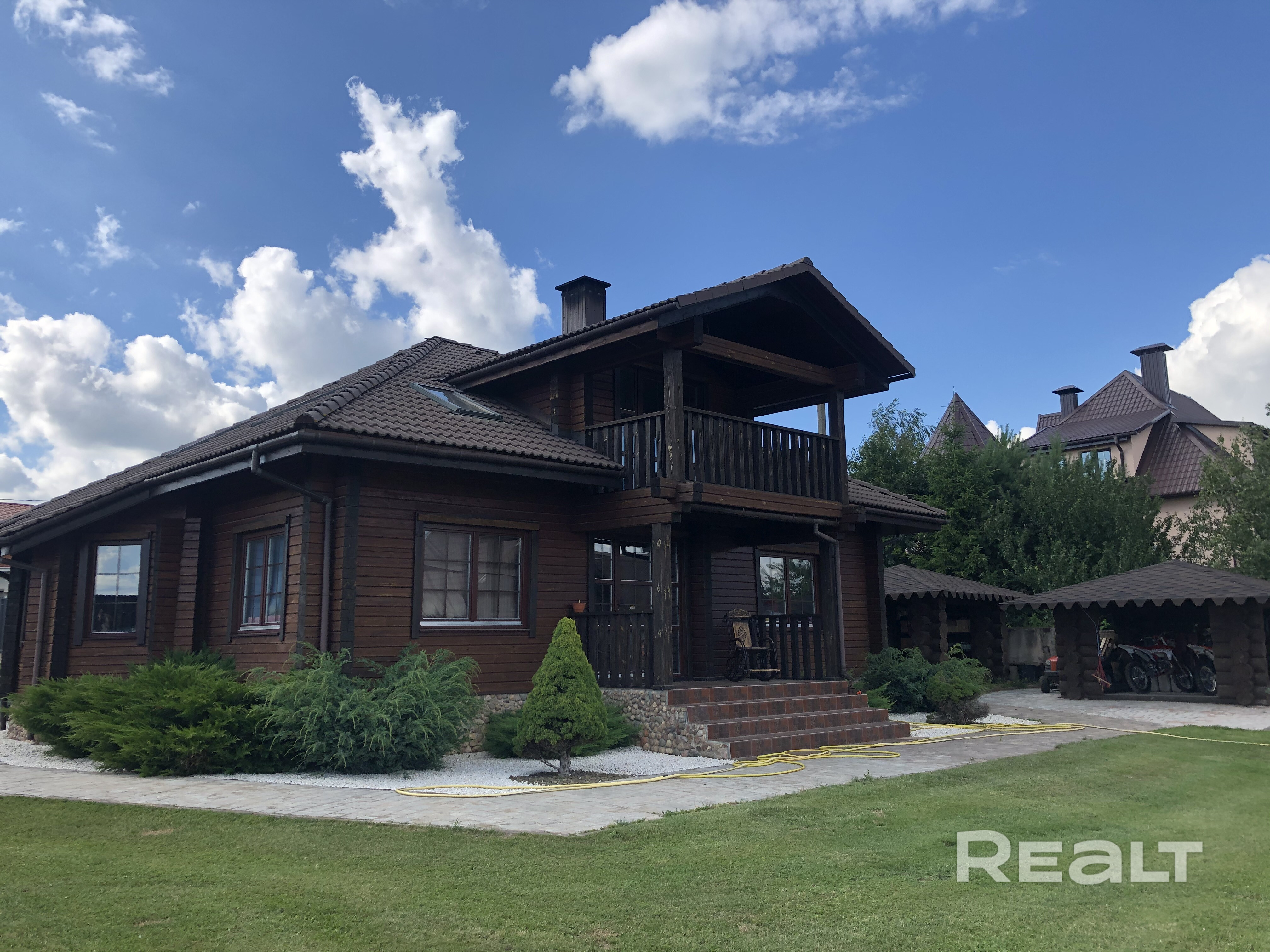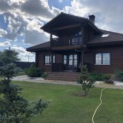 Тёплый деревянный дом всего в 15 км от Минска. Расположен в 3 км от трассы М1 (Брест-Москва). - Отопление электрическое (итальянский электрокотёл), льготный тариф «3 копейки». На первом этаже тёплые полы, второй этаж - батареи. Горячая вода обеспечивается бойлером. Нагревается быстро. - Вся техника в доме европейского производства. Мебель из Италии, Германии. Кухня выполнена в старорусском стиле. -Дом отшлифован и покрыт немецким Remmers в 3 слоя. Полностью готов к проживанию. Тёплый, уютный.