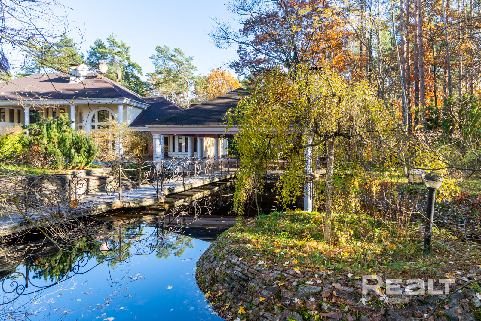 - Навес с камином и зоной барбекю -180м.Отлично подходит для масштабных мероприятий и праздников на воздухе. Рядом с навесом находится пруд, кованный мостик соединяет нас с еще одной постройкой, которая может стать идеальным вариантом для проведения праздников и отдыха в холодное время. Прогулявшись вдоль деревьев Вы попадете к автоматическим воротам и 4 гаражам , один из которых построен для парковки лимузина.