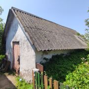 На участке расположены сарая,баня, гараж и погреб. Общая площадь участка 0.14 га. Участок огорожен сеткой. Ворота металлические. На участке хороший фруктовый сад: яблони, сливы, черешня, груша, грецкий орех, виноград.
