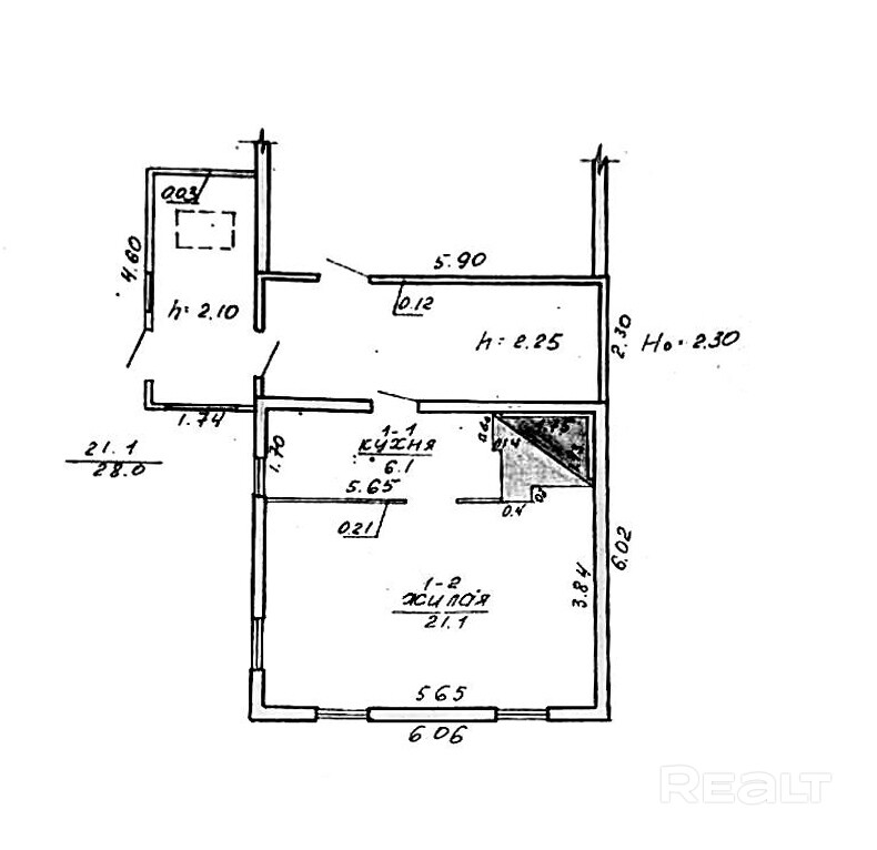21.1 м²