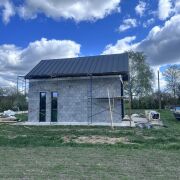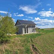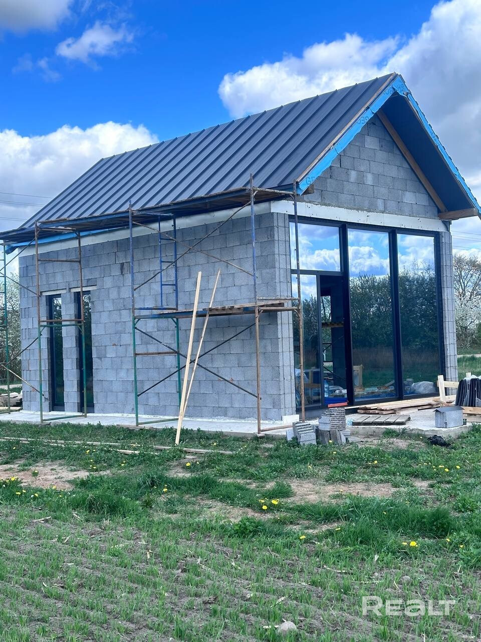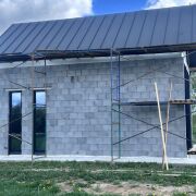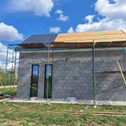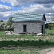 Хороший вариант под гостевой дом или дачу. Ровный прямоугольный участок, без соседей по бокам, в поле. На участке дом 5,4х8,4м. Свайно-ростверковый монолитный фундамент 400мм ширина. Стены из керамзитобетона 400мм термокомфорт. Крыша двухскатная клик-фальц, металлопрофиль. Окна тёплый алюминий от Алютеха. В дом заведены: 1. Газ 2. Вода/канализация 3. Электричесвто В доме металлическая лестница на 2 этаж. Рядом с деревней новая круглосуточная заправка(ночник), в 7км Вилейка и пляж.