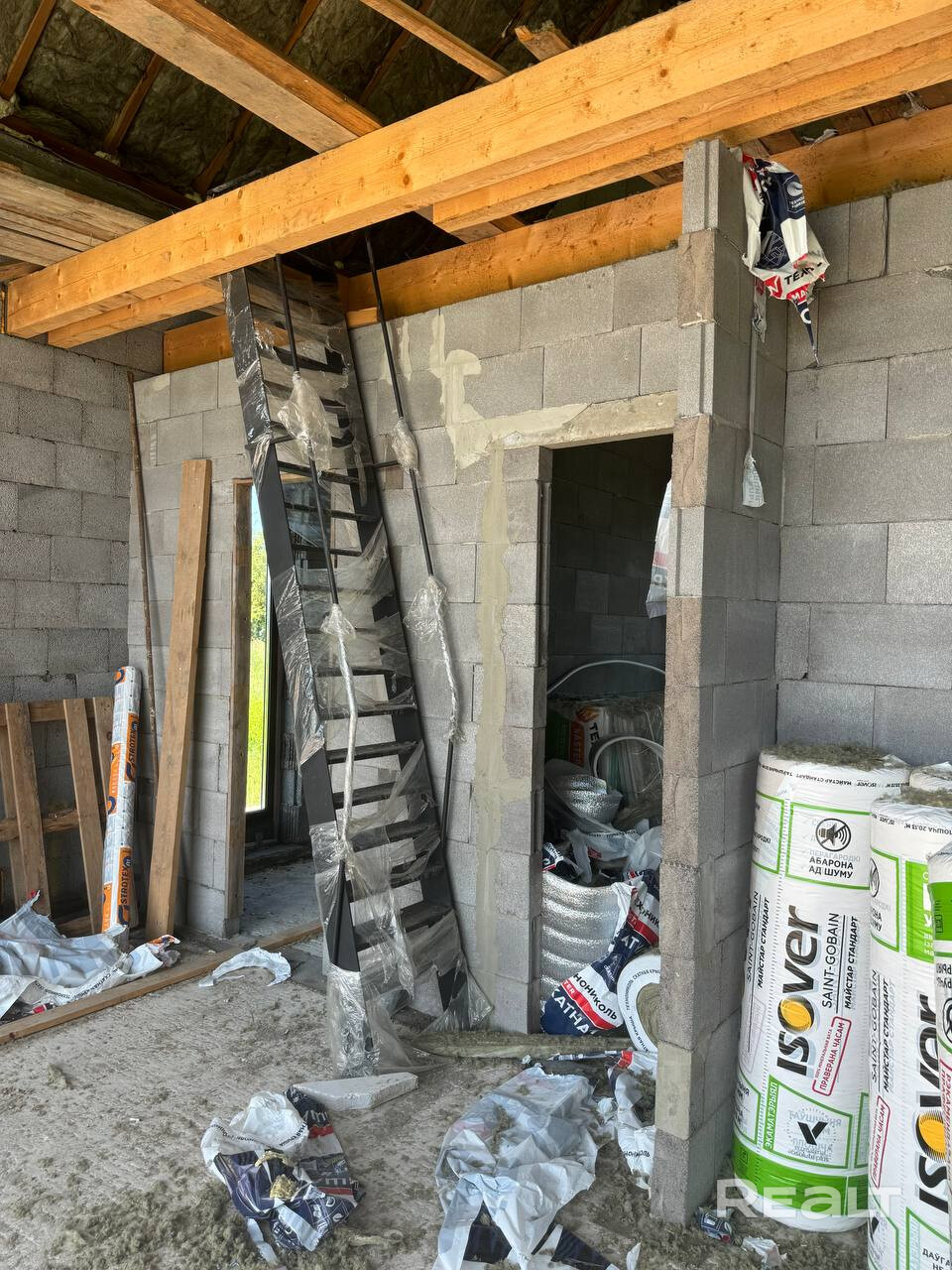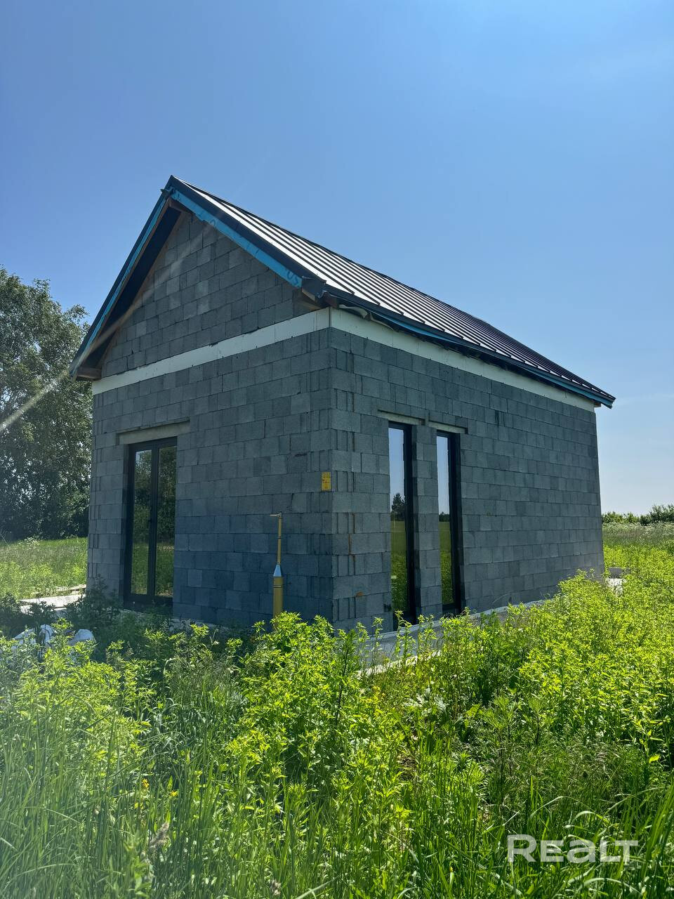 Продаётся готовая коробка. Ровный прямоугольный участок, без соседей по бокам, в поле. В будущем так и останется. На участке дом 5,4х8,4м. Свайно-ростверковый фундамент. Стены из керамзитобетона 400мм. Крыша двухскатная клик-фальц, металлопрофиль. Окна тёплый алюминий от Алютеха. В дом заведена центральная холодная вода, подключен газ. В доме метал.лестница на 2 этаж. Электричество на стройплощадку 6кВТ. Рядом с деревней новая круглосуточная заправка, в 7км Вилейка и вдхр. До улицы асфальт.