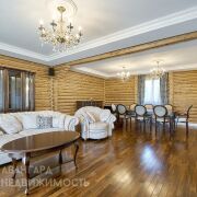 Просторная гостиная с выходом на балкон, с которого открывается вид в сторону Дубровского водохранилища. Кинолюбители оценят установленные проектор с высококачественным изображением и современную акустику. В гостиной также есть электрокамин. Вся мебель и техника остаются.
