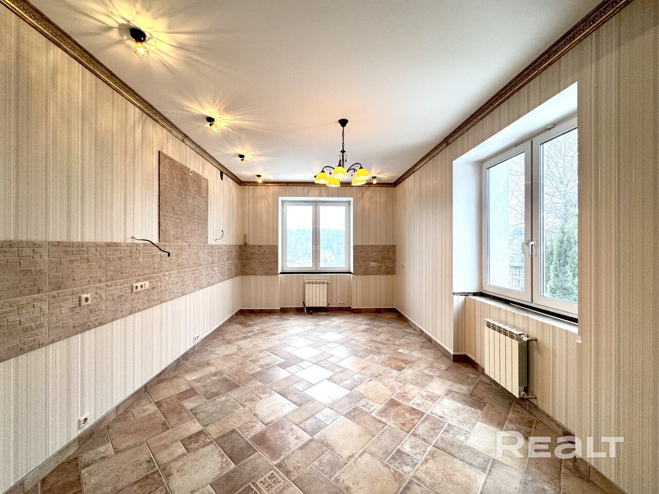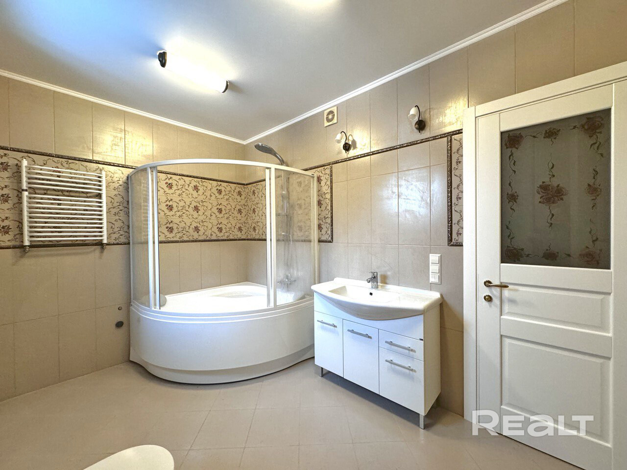 - вся плитка производство Испания, сантехника (Чехия, Германия), радиаторы - Италия, двери межкомнатные МДФ, светильники - Италия, полы - паркетная доска и кафель (подогрев водяной), обои производство Германия, смесители - Германия, подоконники - мрамор, лестница облицована плиткой, кровать производство Малайзия (ковка + матрас VEGAS), трюмо, теннисный стол.