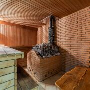 Банный комплекс с бассейном, огромный гараж, зимний сад.