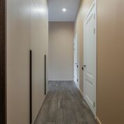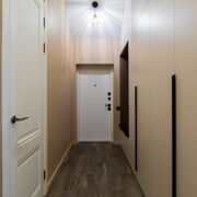 В прихожей высокие шкафы до потолка, кушетка для переобувания и хранения. За дверцей-невидимкой спрятан распределительный электрощит, каждый автомат подписан для удобства пользования.