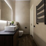 Теплый пол. В санузле безбарьерная душевая с трапом в полу, унитаз-инсталляция, несколько сценариев освещения.