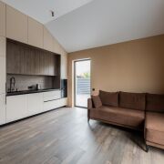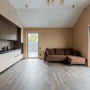 Кухня-гостинная 32 м2 + 2 спальни (13.5 + 11.6 м2), с/у - 5.3 м2, котельная 5.3 м2, чердак 30 м2. Просторная кухня со всей необходимой встроенной техникой.