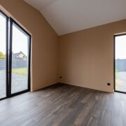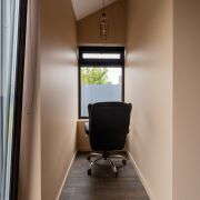 Приватная часть дома - две спальни. Окна в пол, с возможностью выйти на участок. В родительской комнате оборудован кабинетный уголок у окна. В несущей стене установлен взломостойкий сейф.