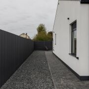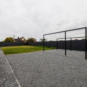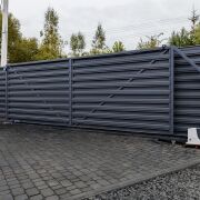 По периметру установлен забор высотой 2 м. Откатные автоматические ворота с дистанционным управлением.