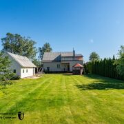 Ухоженная территория: 200 взрослых туй, аккуратный газон, тротуарная плитка, огромный навес для машин, отдельный гараж с резиновым полом и сарай.