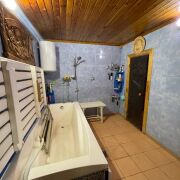 Стены блочные. Перекрытия в доме деревянные. Кровля – метал. профиль. Окна ПВХ, металлическая входная дверь. Централизованное электроснабжение 220 В. Отопление водяное (газовый котел). В комнатах реализован теплый пол. Водоснабжение – скважина. Канализация местная. Дом построен на ленточном фундаменте. Внутренняя отделка дома выполнена из качественных современных материалов. В доме установлен действующий камин, по периметру дома - система видеонаблюдения. Имеется погреб.