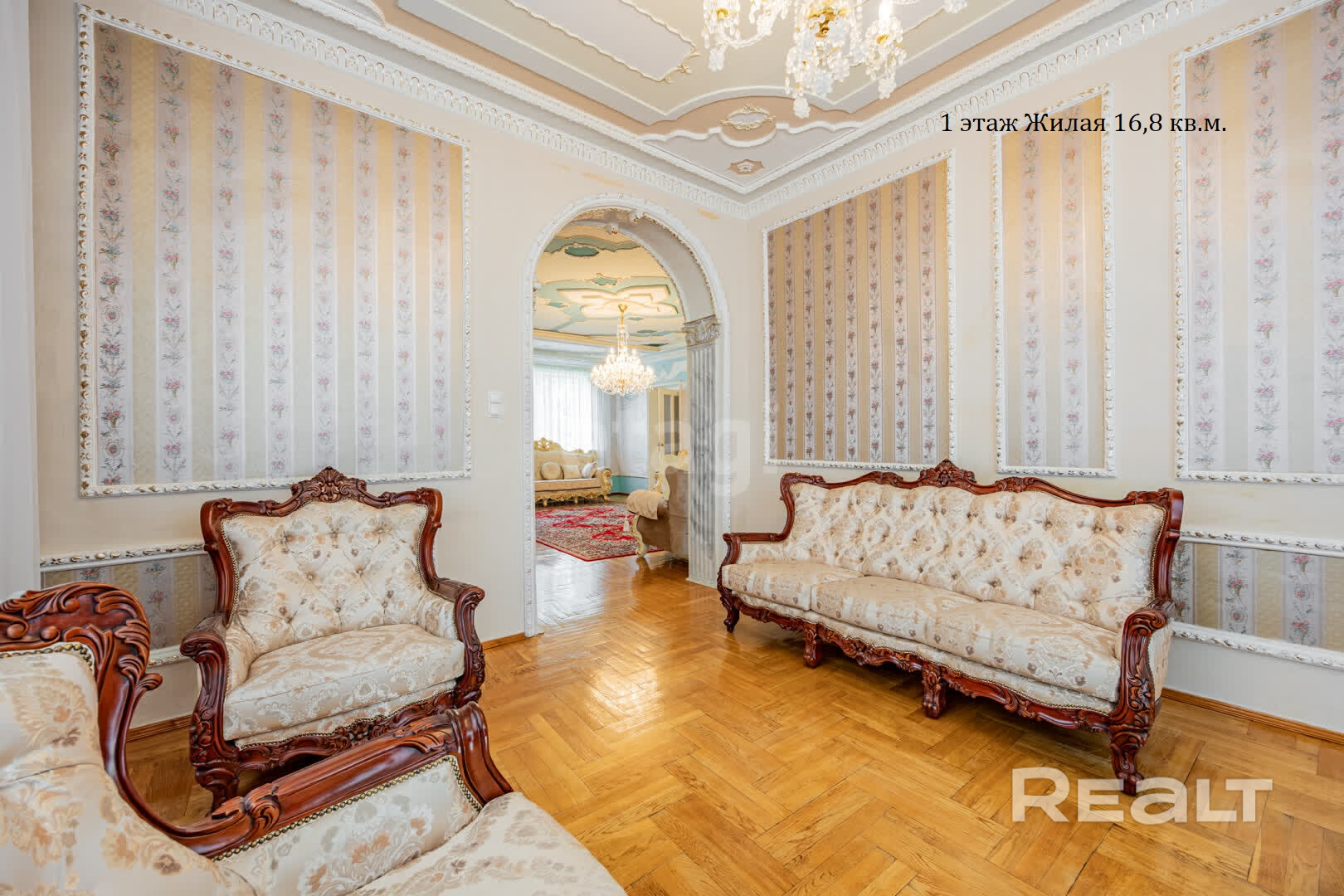 - Первый и второй этажи: Насладитесь уютом и теплом высококачественного паркета, оригинальной лепниной из гипса с инкрустацией сусальным золотом на стенах и потолках. Кухня оснащена практичным ламинатом, новой встроенной кухонной мебелью и техникой.