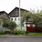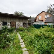 Вход в квартиру осуществляется с придомовой территории, на которой находится гараж, сарай и баня (подлежит реконструкции), три подвальных помещения, а также огород с клубникой, малиной, смородиной и крыжовником, на входе в дом растут плодовые деревья (вишня).