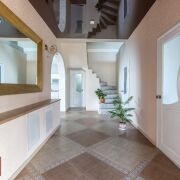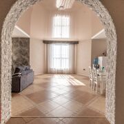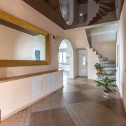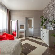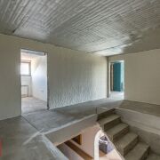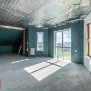 На участке стоит блочный дом 2013 года постройки. Дом теплый, уютный, просторный, светлый. В доме выполнен современный стильный ремонт из качественных материалов. На первом этаже имеется просторный коридор, 2 жилые комнаты, большая кухня-гостиная 51,1 м2, совмещенный санузел, теплый пол. На мансардном этаже 3 комнаты, гардеробная, санузел. Выполнена вся черновая отделка, поклеены обои, сделана стяжка под любое покрытие, полностью разведена электрика и отопление. Высота потолков- 2,90м. (1-й этаж), 2,46 (мансардный этаж). Фундамент – ФБС. Перегородки и стены-газосиликатные блоки. Панорамные окна-зеркальные стеклопакеты. Перекрытия деревянные.