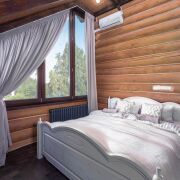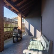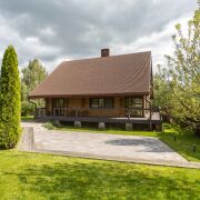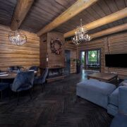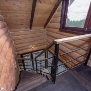 Жилой дом с террасой (общей площадью 191,9 м2) построен из бревна большого диаметра, который используется при строительстве из срубов премиум-класса. Внешний вид таких домов выглядит очень представительно и эстетично.