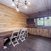 В доме расположены четыре жилые комнаты (гостиная с камином и обеденной зоной и три спальни), банкетная комната, кухня, два санузла.