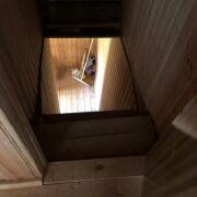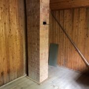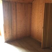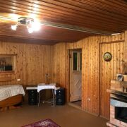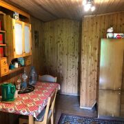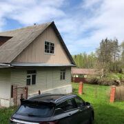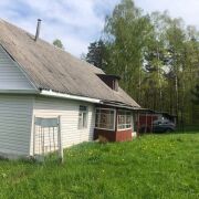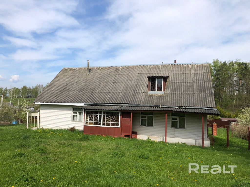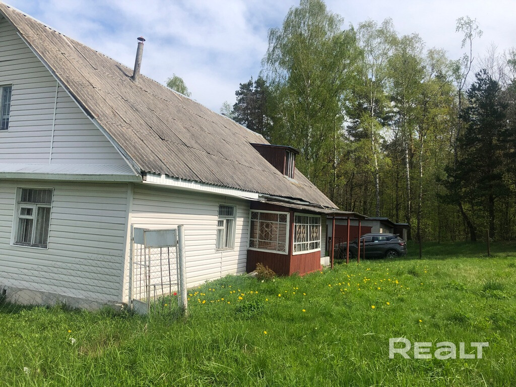 Общая площадь дома по СНБ составляет 86,6 м2. Участок в частной собственности 18 соток, граничит с лесом. Деревянный дом с мансардным этажом. Есть сарай и гараж, парилка, уборная на улице.