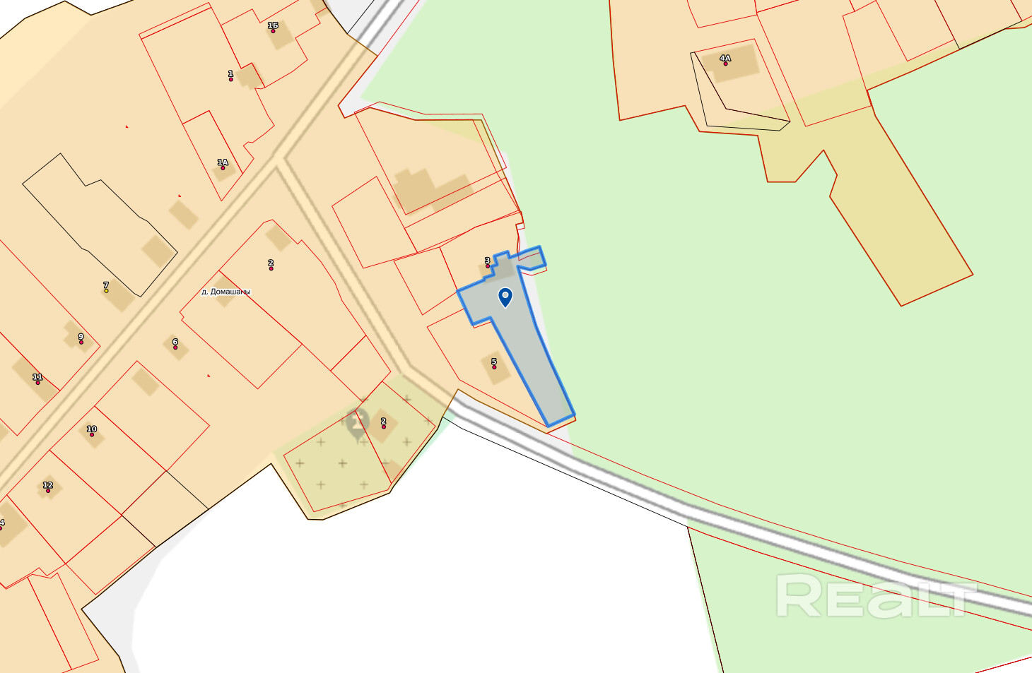 Участок в частной собственности 18 соток, граничит с лесом.