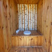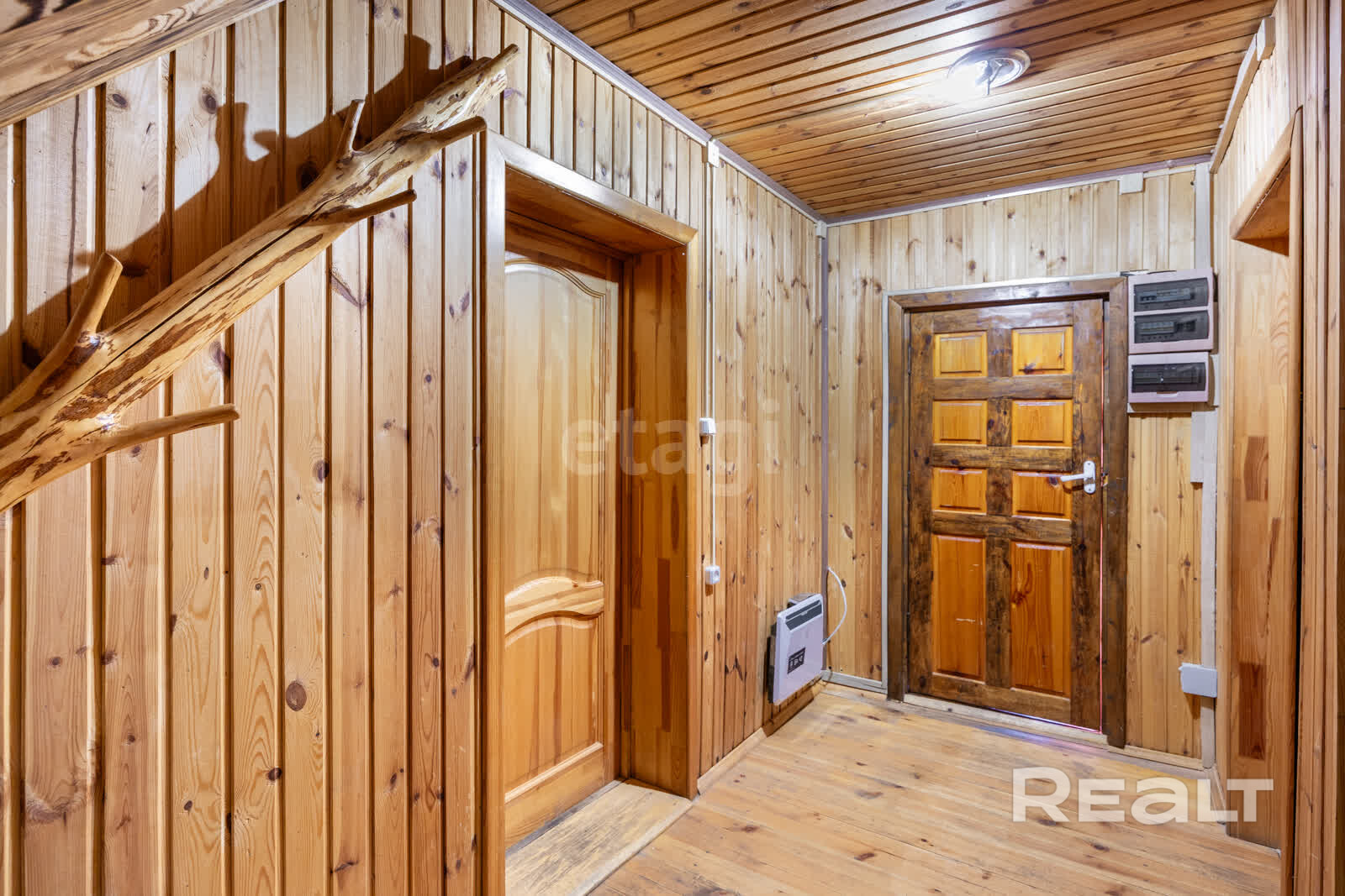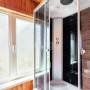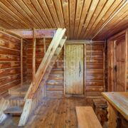 - Все помещения полностью оборудованы коммуникациями: электричество, водопровод из родника, канализация, отопление — можно жить круглый год.