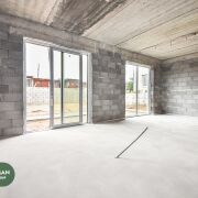 В доме на полу чистовая стяжка, стены-под штукатурку, в котельной установлены межкомнатные двери, входная дверь алюминиевая, производство Германия (SHUCO). Высота дверей 2,7м., выход на террасу алюминиевый слайдер Алютех. Окна VEKA топ серия 80 мм, с энергосберегающим напылением, ламинацией и скрытыми петлями. Высота окон 2,4 м.