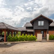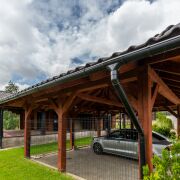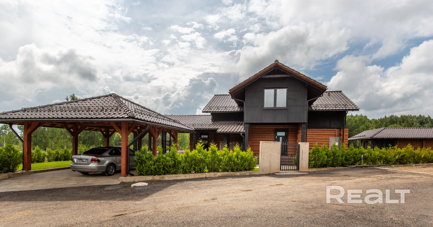 На участке есть также отдельностоящая баня из сруба. Навес для машин.