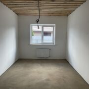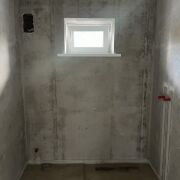 Фундамент свайно-ростверковый с монолитной плитой. Стены из газосиликатных блоков 400 мм, утепление 50 мм пенопласт. Нанесена декоративная штукатурка, окрашена силиконовой краской. Окна ПВХ. Выполнена чистовая стяжка пола, стены оштукатурены.