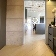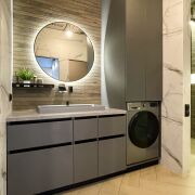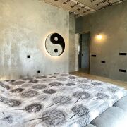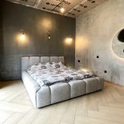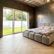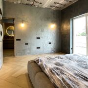 Венецианская штукатурка на стенах и напольный керамогранит (в санузле — премиальная плитка из Индии) придают дому особый шарм и роскошь.