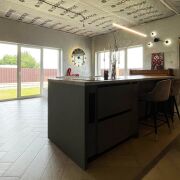 Современная кухня с фасадами Egger, механизмы Blum (ящики и доводчики), высоконадежная и стильная техника: варочная панель, духовой шкаф, вытяжки Akro и Maunfeld, холодильник Beko — воплощение функциональности и вкуса.