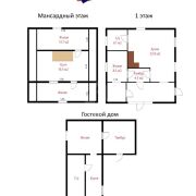 ✔ 2 этаж: две жилые комнаты и проходная комната.