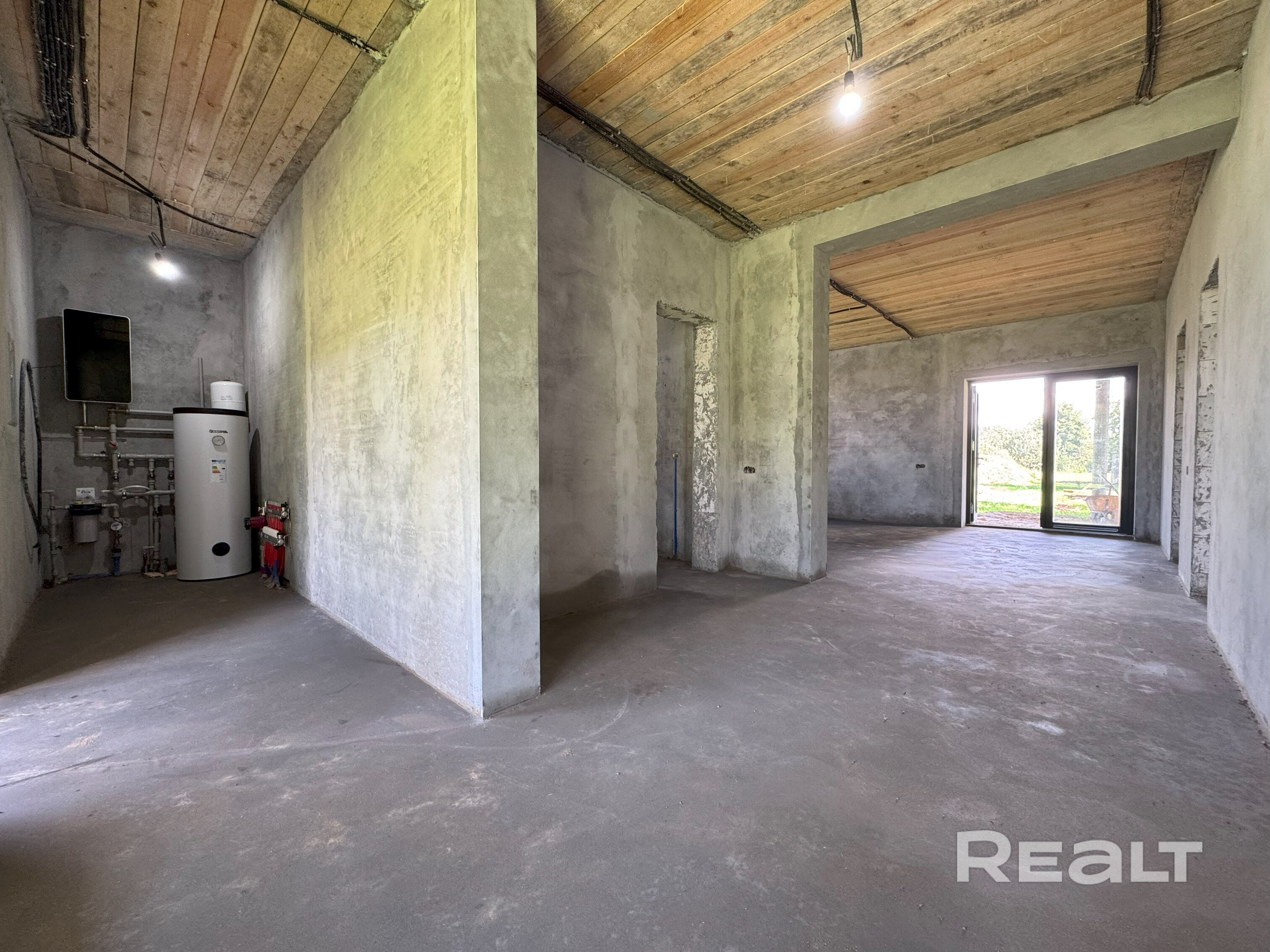 К дому пристроено отапливаемое хоз. помещение, с отдельным входом со стороны террасы. В него заведена вода и канализация.