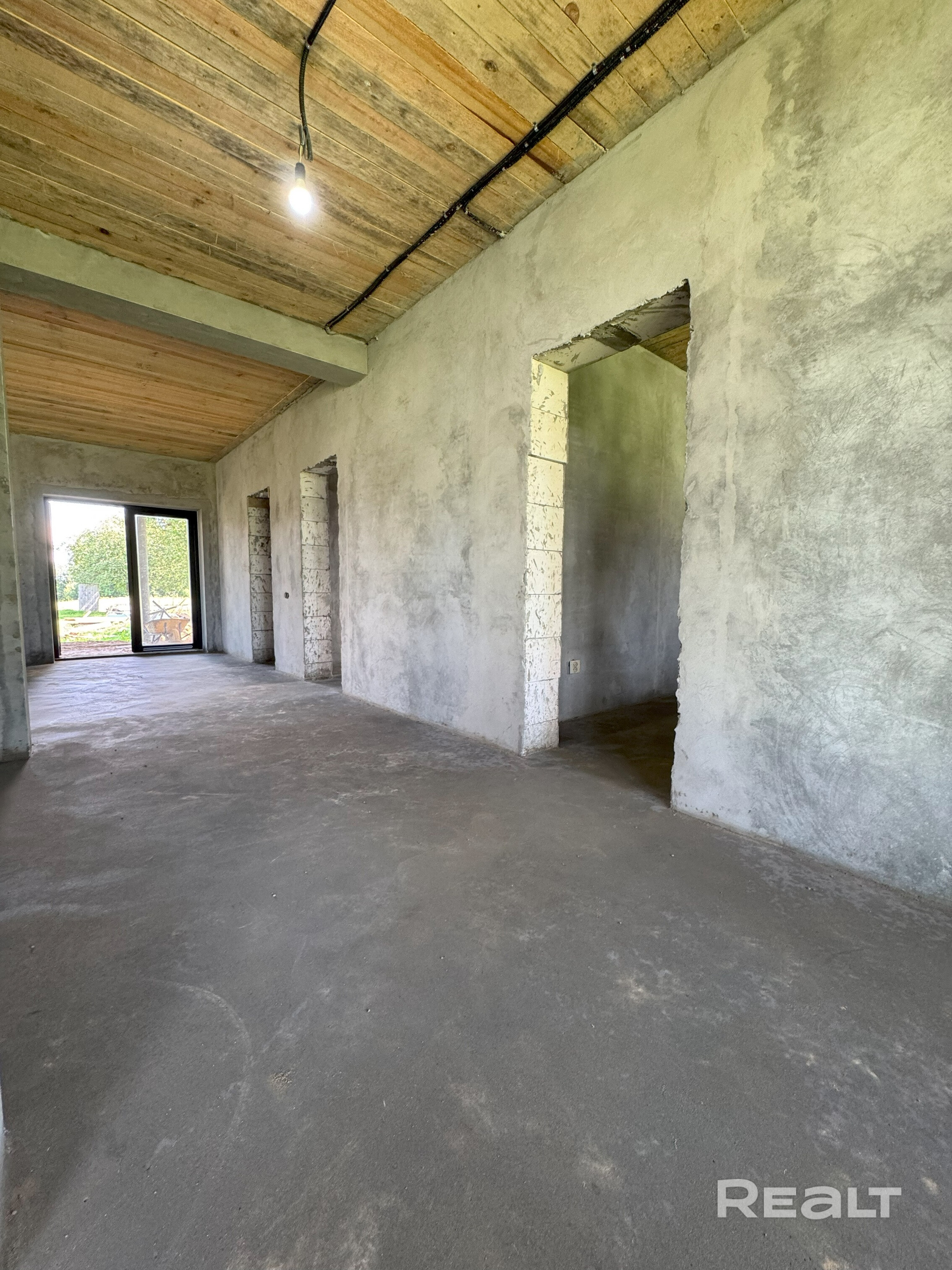 Фундамент свайно-ростверковый, стены из газосиликатных блоков толщиной 40 см., установлены хорошие стеклопакеты (veka 82 профиль), крыша 4-скатная (вальмовая), утеплена мин. ватой, покрыта металлочерепицей (Флоренция 9005 мат). Залита чистовая стяжка. Стены оштукатурены. Проводка разведена.