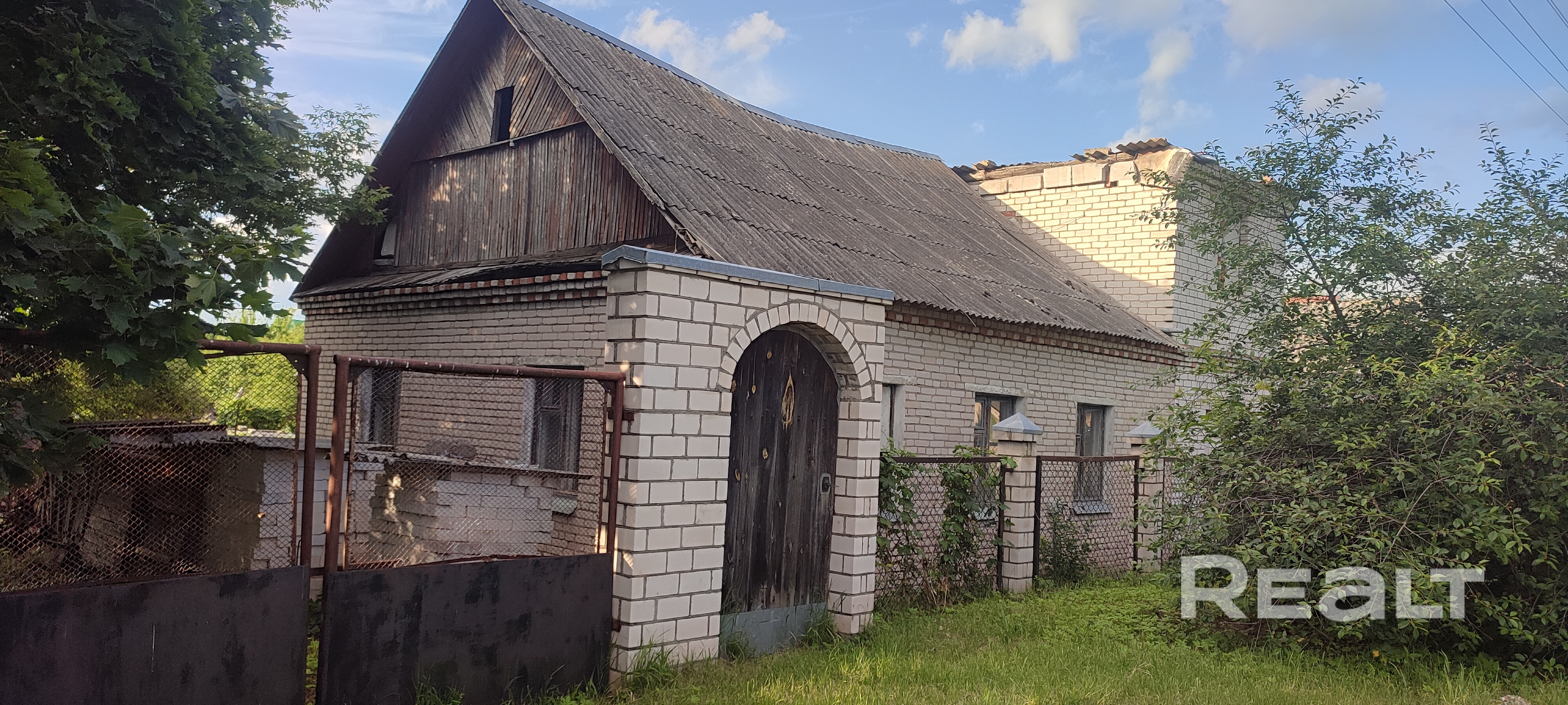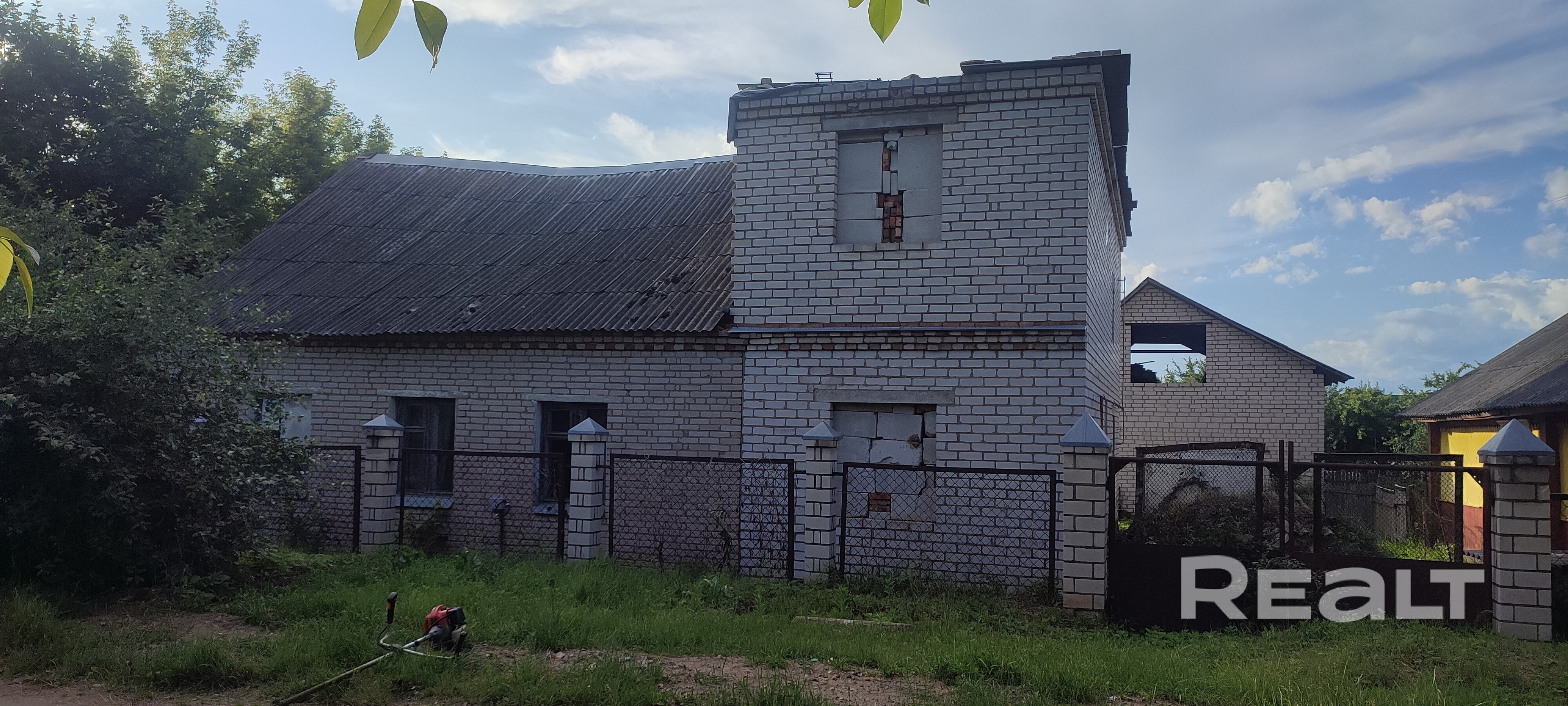 дом недостроен, требует вложений, имеется гараж-сарай, подведены коммуникации: газ , вода, 3 фазы, канализация местная.