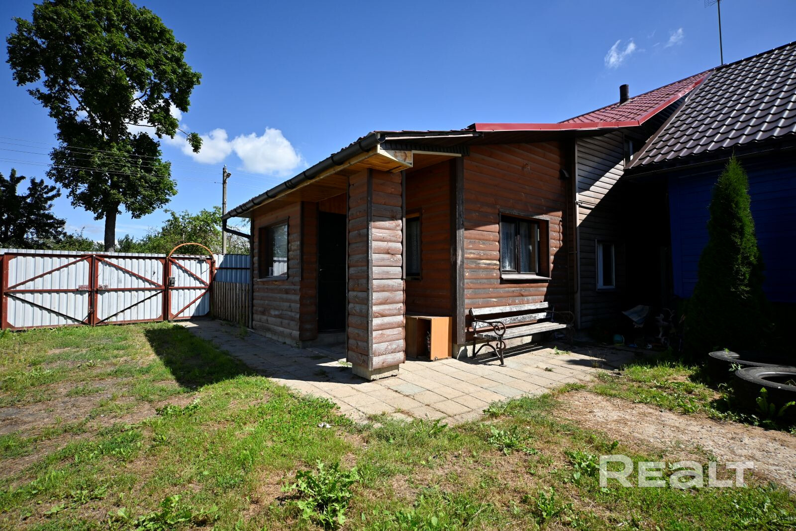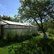 На участке: летний душ, сарай, барбекю зона, плодово- ягодные деревья, теплица, крыжовник, смородина, поречка и так далее...