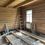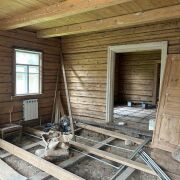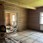 В доме разместились 3 большие комнаты, кухня- гостиная, туалет, душ, баня. Комнаты просторные, светлые. Высокие потолки создают ощущение простора.