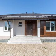 ·  Коттедж построен по-современному и весьма популярному у частных застройщиков проекту — одноэтажный, с вальмовой крышей. Под ним монолитная плита, стены — из газосиликатных блоков.