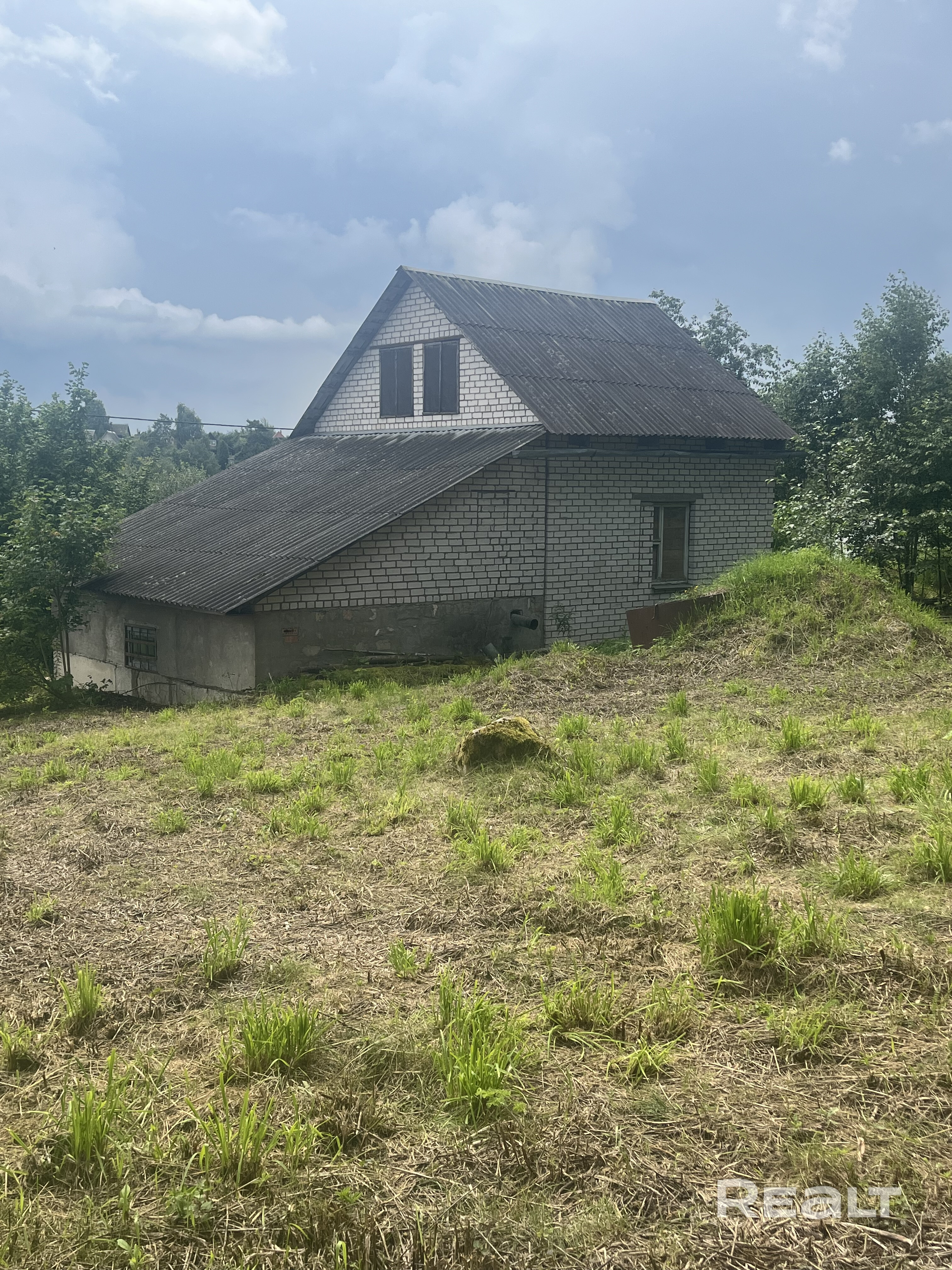 На участке в 20 соток расположено незавершенное законсервированное строение – отличная возможность воплотить в жизнь дом своей мечты! Дом построен из кирпича, крыша покрыта шифером.