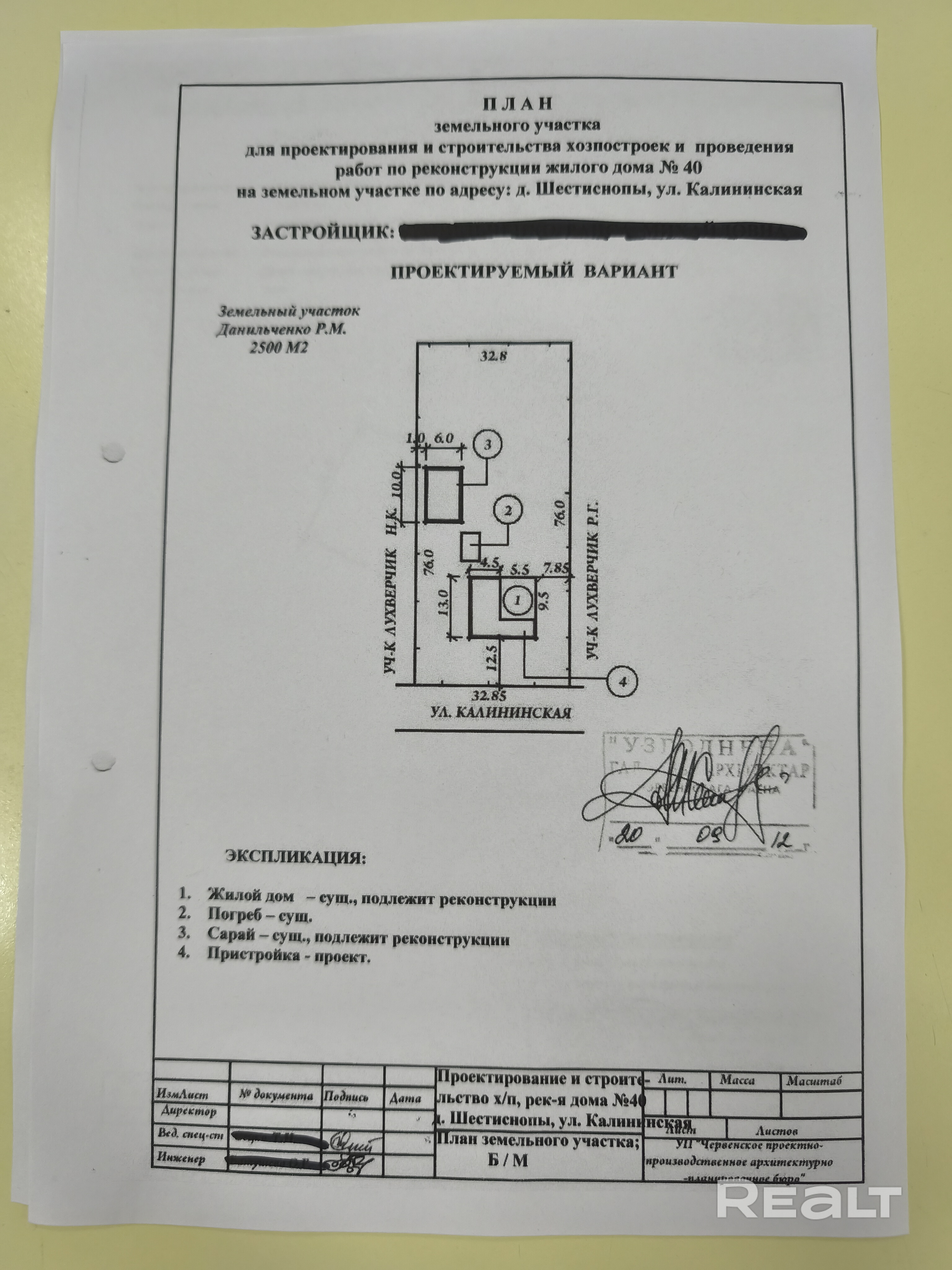 - Площадь участка