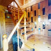 -Веранда с винтовой лестницей и зоной хранения, просторная кухня , жилая комната с камином, санузел с душевой и стиральной машиной.