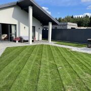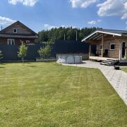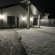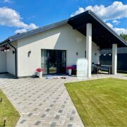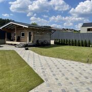Дом готовый к круглогодичному проживанию. Фундамент свайно-ростверковый. Дом из сборного железобетона, дополнительно утеплен минплитой 100 мм. Отопление: теплые полы во всем доме+радиаторы в спальнях. Напольное покрытие плитка, ламинат. На территории установлен сруб для бани, заложен фундамент для хозяйственного блока с навесом для автомобилей общей площадью 70 м.кв. Территория благоустроена, плитка тротуарная около 350 м.кв, газон около 350 м.кв. Высажены плодовые деревья: 4 яблони, 4 груши.