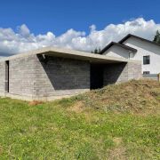 Участок 18,5 соток правильной формы. Дом модульной конструкции из кермазито-бетонных блоков.
