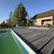 2-х этажный дом с высокими потолками и окнами в пол на втором этаже. Гараж на 2-3 автомобиля с ямой и погребом. Гостевой дом 25кв, открытая беседка, кострище, хоз.постройка. Две террасы с выходом из дома. Одна с печью-мангалом. Терраса у бассейна с зоной отдыха. Место под бассейн 5 на 3. Рядом фундамент под баню/гостевой дом/хоз.постройку (блоки тоже есть частично) Два санузла (на 1-м и 2-м этажах). Встроенные шкафы, гардеробная. 1-й этаж теплые полы, 2-й радиаторы. Натяжные потолки. Не агент!