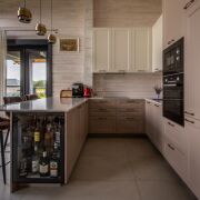 Мебель и светильники: подбирались и изготавливались на заказ по дизайн проекту: кухня крашенный МДФ, столешница камень, мойка и смесители «omoikiri».