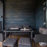 Зона барбекю – не только дизайнерское решение, но и грамотно обустроенное место для отдыха и приготовления блюд на огне. Тут можно организовать любой праздник с салютом. Голубые елочки – место, где можно спрятать подарки для родных на Новый Год.
