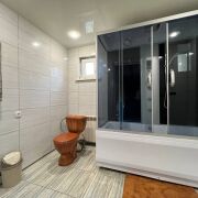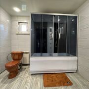 В тыльной стороне участка за домом, есть отличная хозпостройка, которую можно переоборудовать под баню. Также имеется вместительный гараж и отдельный погреб для хранения провизии.