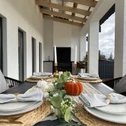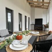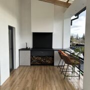 Продолжением дома стала большая терраса с обеденный зоной и зоной барбекю.