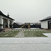 На участке ландшафтный дизайн, мини сад, есть игровая площадка, гостевой домик с сауной.
